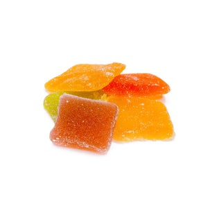 Pure CBD Isolate, Organic Sugar, Glucose, Natural Organic Flavours (Mango, Green apple, Orange, Strawberry, Peach), Annatto Seed (helps with diabetes, fevers, heartburn, and is an anti-oxidant), Beet Powder (high in potassium iron and calcium), Natural Colours from Turmeric (a natural anti-inflammatory) & Hibiscus Flowers (helps liver function, regulates blood pressure, fights bacteria), Citric Acid, Potassium Sorbate, Gelatin.