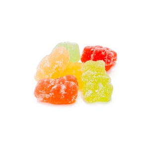 Ingredients: Corn syrup, sugar, water, gelatin, white grape juice from concentrate, citric acid, tartaric acid, calcium lactate, natural and artificial flavours, cannabis oil, coconut oil.